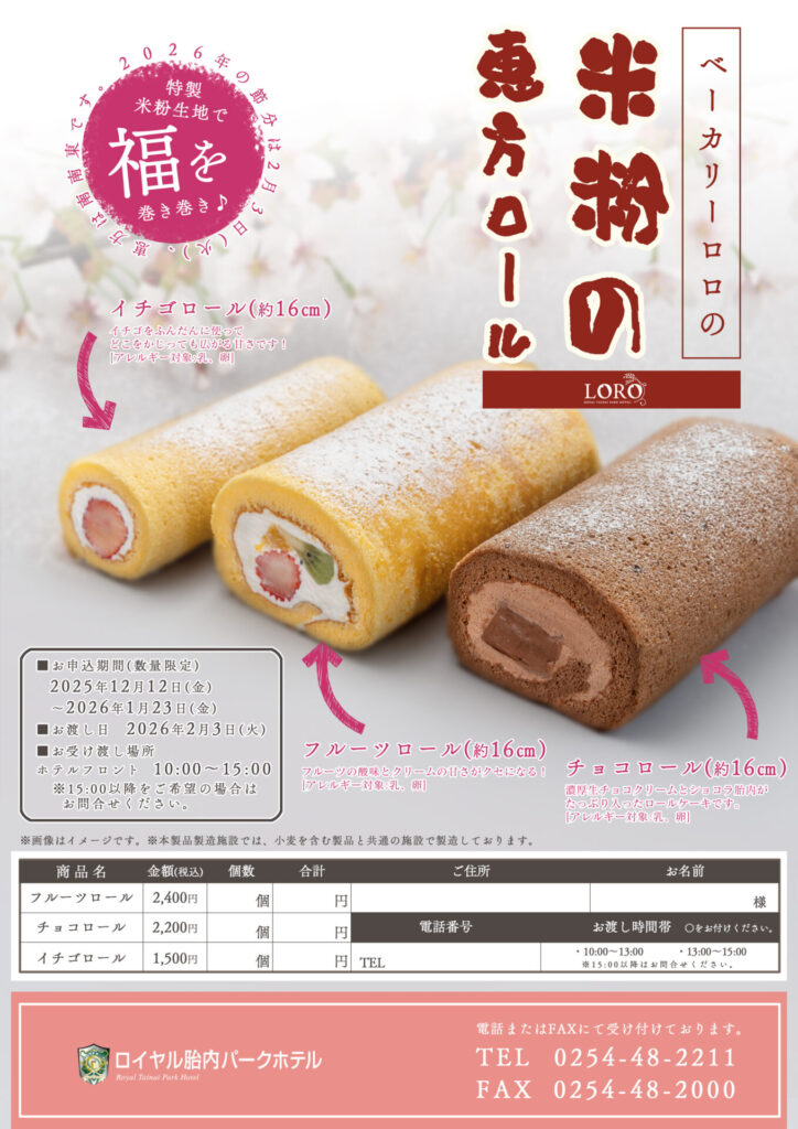 **「米粉の恵方ロール」**のご予約受付を開始いたします。