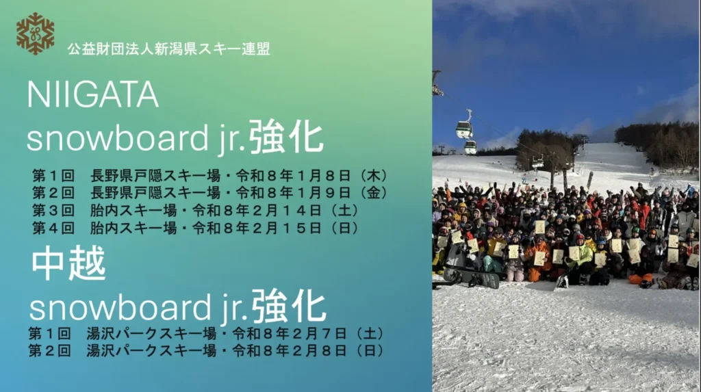 2/14(土)、2/15(日)にジュニアスノーボード強化合宿を開催します!
